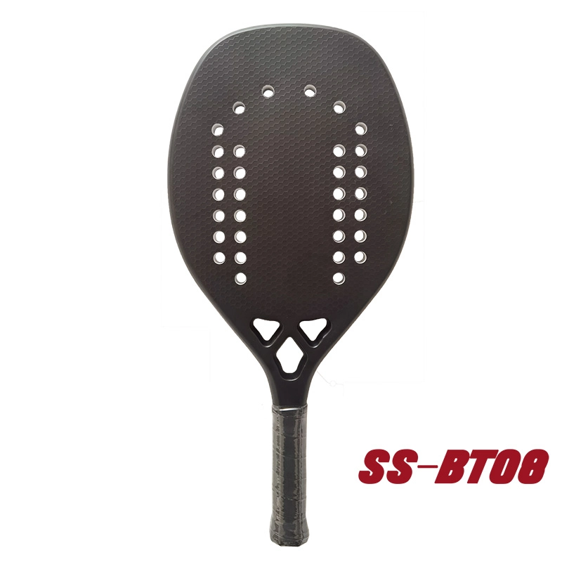 Raket tenis pantai 20mm Model SS-BT02 adalah raket padel karbon penuh. Untuk SS-PR01 standar, bahan mukanya adalah serat karbon, bahan rangkanya adalah karbon penuh, dan inti memori EVA. Karbon banyak digunakan dalam raket padel, karbon adalah rajutan tunggal, dengan kekakuan yang kuat, lebih tahan lama daripada fiberglass.